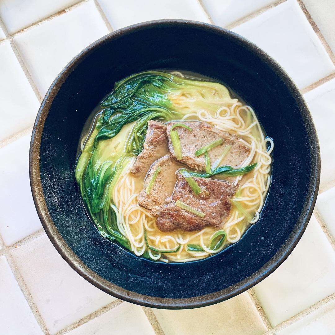 湾区天气真的是 白天热到死 晚上又冻得慌。底下藏了三颗冰块🧊~ 汤做的很淡呢!冷面超级棒!