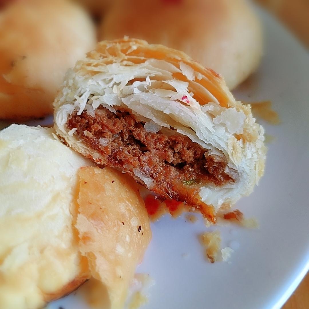 今天的牛肉馅加了辣椒和鸡肉松🐔