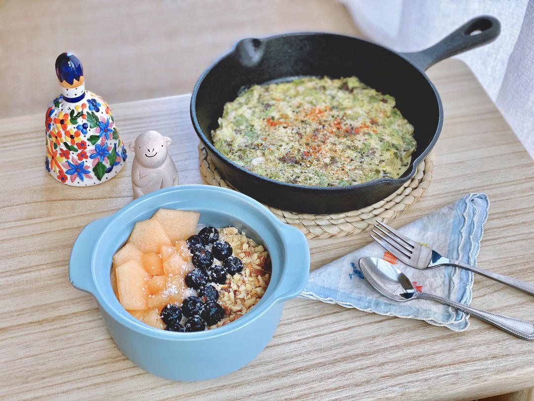 椰蓉水果隔夜燕麦|蔬菜蛋饼