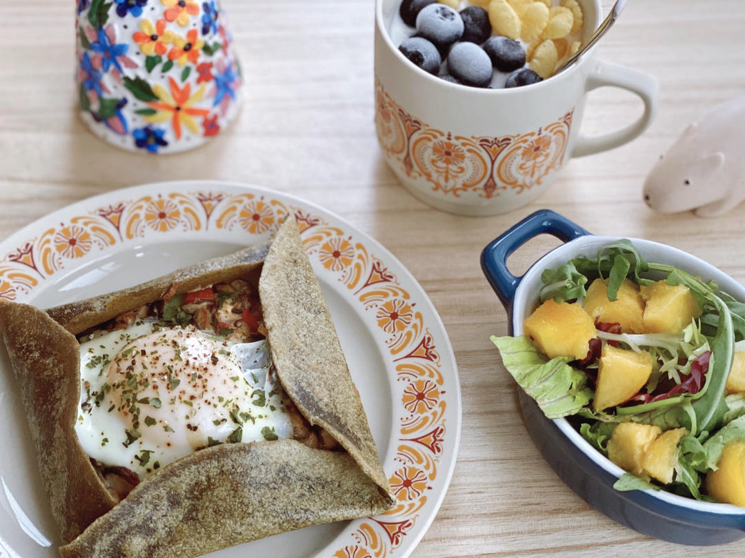 法式煎饼|黄桃沙拉|蓝莓玉米脆片酸奶