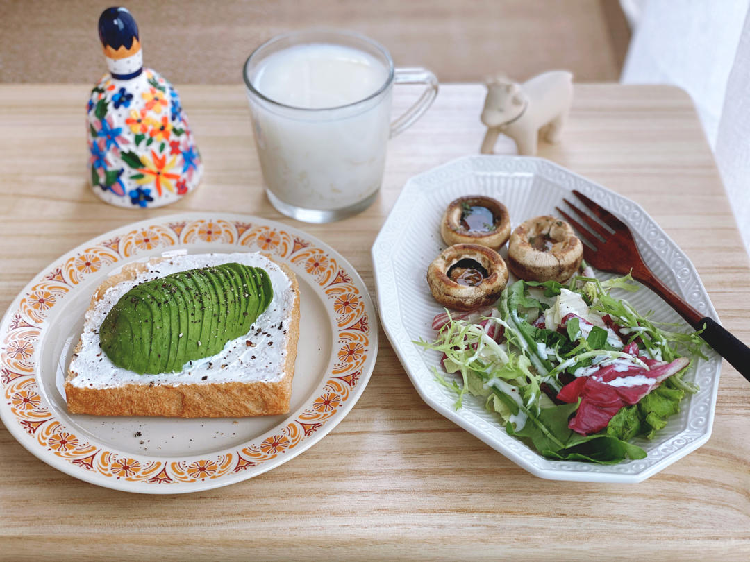 牛油果开放三明治|牛奶银耳露|煎口蘑|沙拉🥗