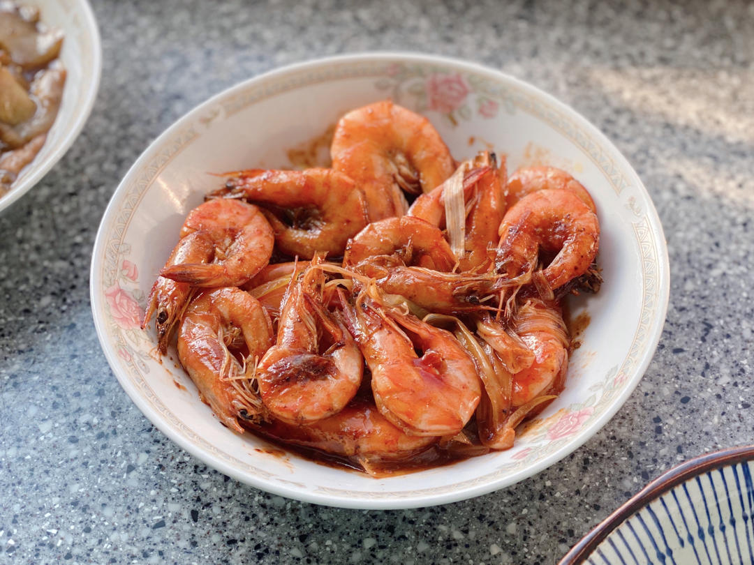 油焖虾|雪菜炒丝瓜|烧茄子|西红柿炒鸡蛋