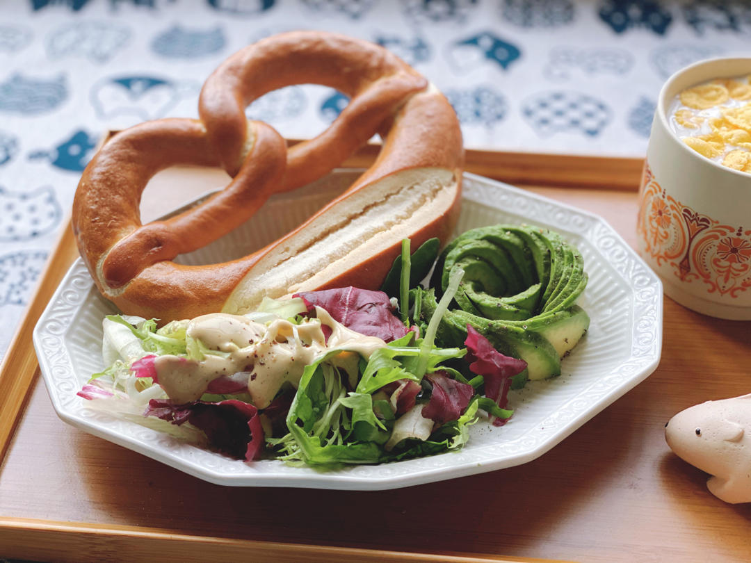 碱水包|牛油果|沙拉|玉米脆片牛奶