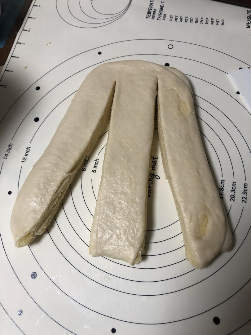 原方,馅料1.5比例。第一次面饼擀的短了只辫上了两绕。长帝烤箱150°,40...