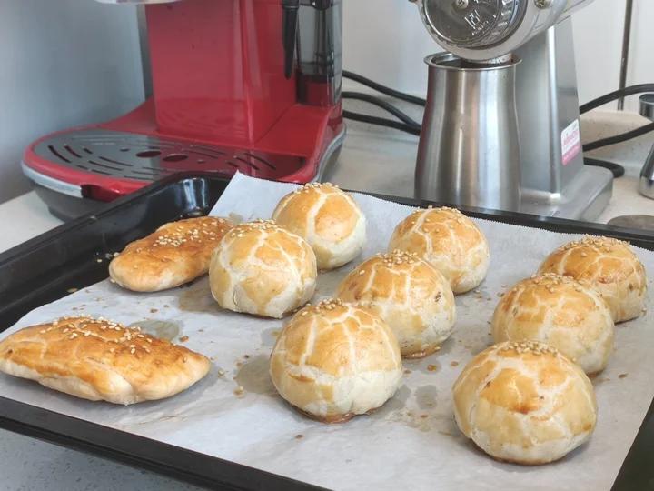 第一次没有咸蛋黄所以只用了豆沙蛋黄结果爆的惨不忍睹,这次自己用鸡蛋腌的蛋黄(懒得去买鸭蛋),然后用了猪油,烤出来很均匀