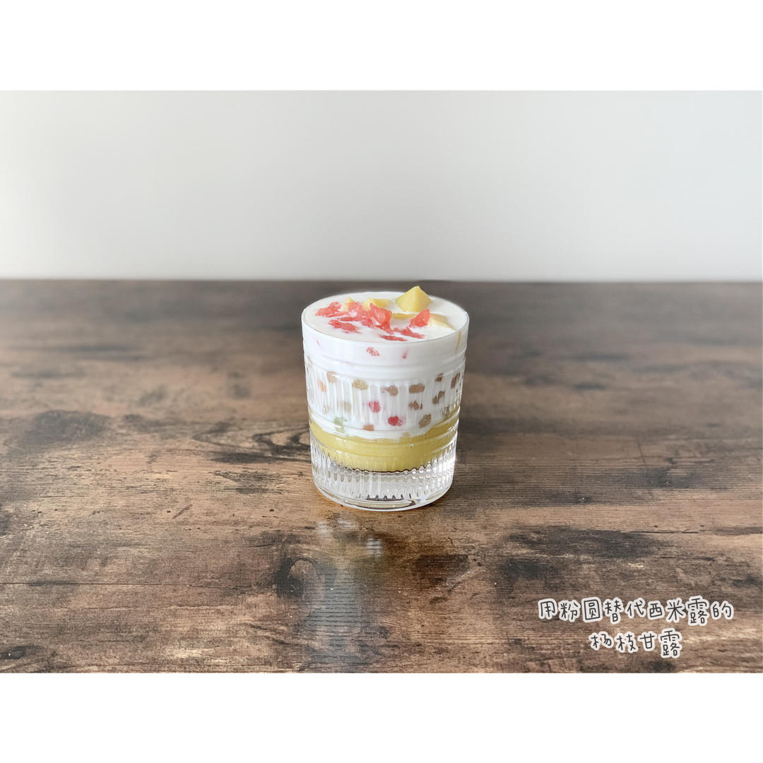 没有炼乳,放了点点糖,其实不放糖可能也不难吃,没有西米,换成了粉圆,加了点西柚,酸酸甜甜...