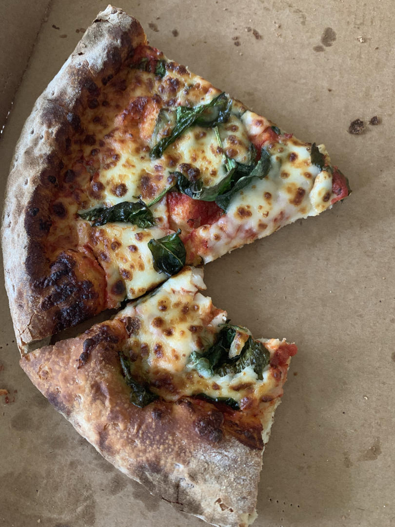 外卖,披萨,加了菠菜,第一次尝试well done .