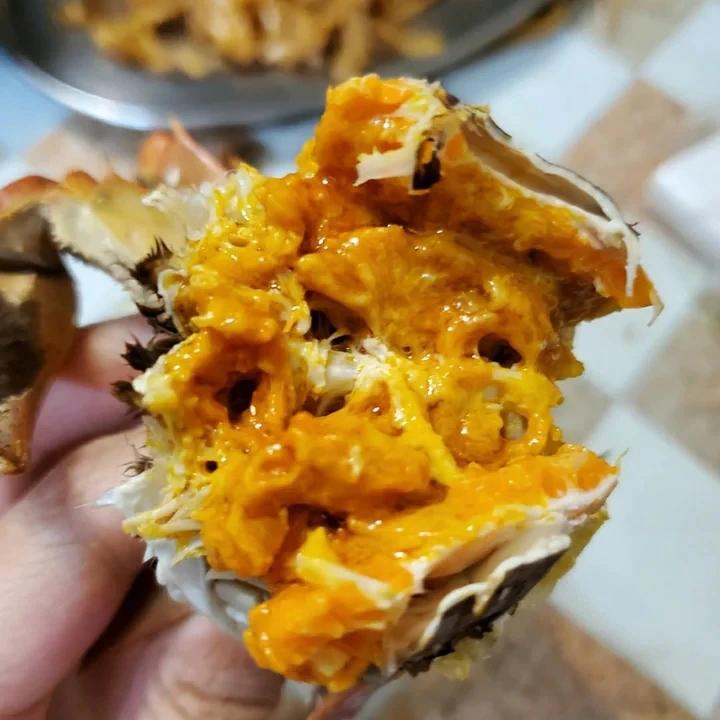 盐焗的话,腿会比较干,但是更能突显蟹黄的醇香,有些蟹黄爆出来流到盐里,洗锅的时候都要馋倒我了#晚餐•2020年10月2日...
