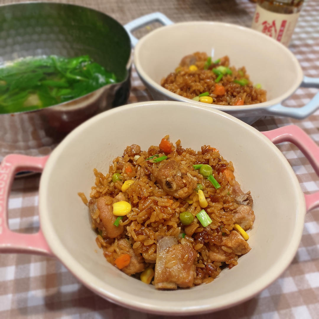 孩子要上晚自习,晚餐就只剩我和老公了,排骨饭,简单又好吃 !