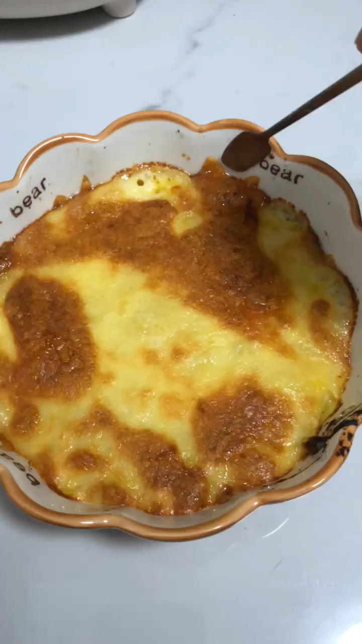 榴莲是买的冻榴莲在碗里按成泥 上面多铺点芝士 放进烤箱上下管180 或者200度 烤15或20分钟 如果吃不了 剩下的搅...