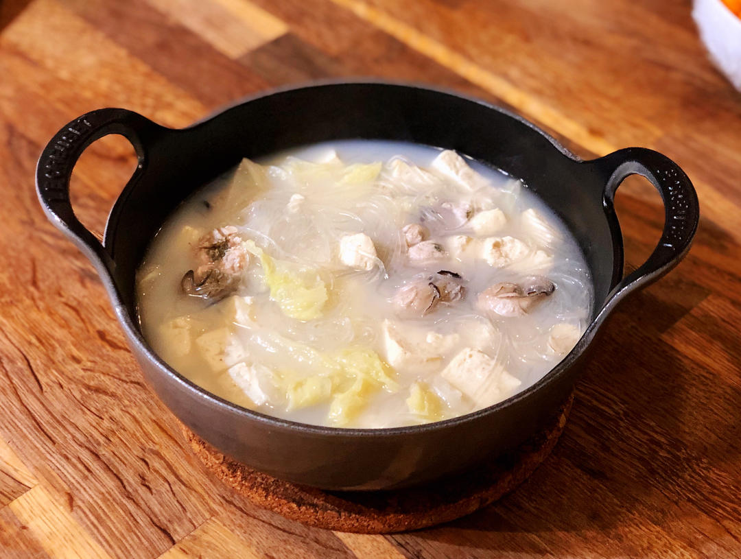 第一次做嫩豆腐汤,用麻油炒洋葱和大葱,加辣椒粉、酱油和少许糖,然后加水加料进去煮。出乎意料太好吃了!以后不用再去韩国餐厅...