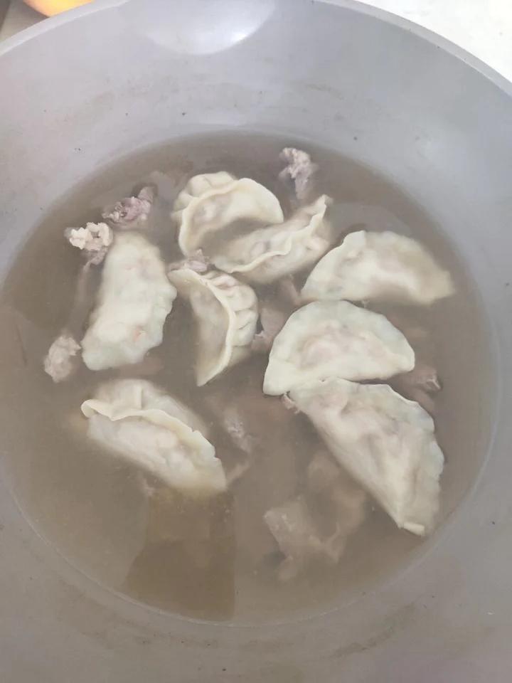 妈妈牌水饺+牛肉,好吃,不过酱料没弄好,饭后橙子🍊好好吃。