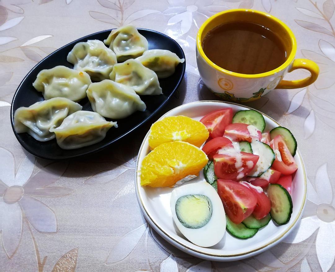 胡萝卜鸡蛋蒸饺🥟、红枣红豆枸杞茶🥃