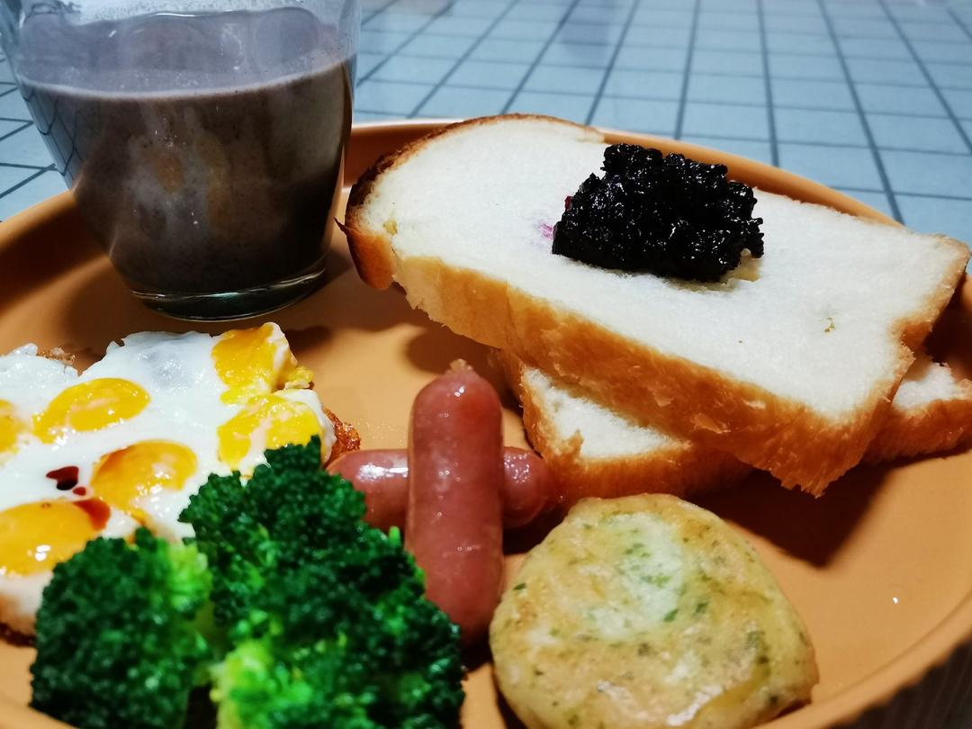杂粮糊/淡奶油吐司+被熬成膏状的蓝莓酱~