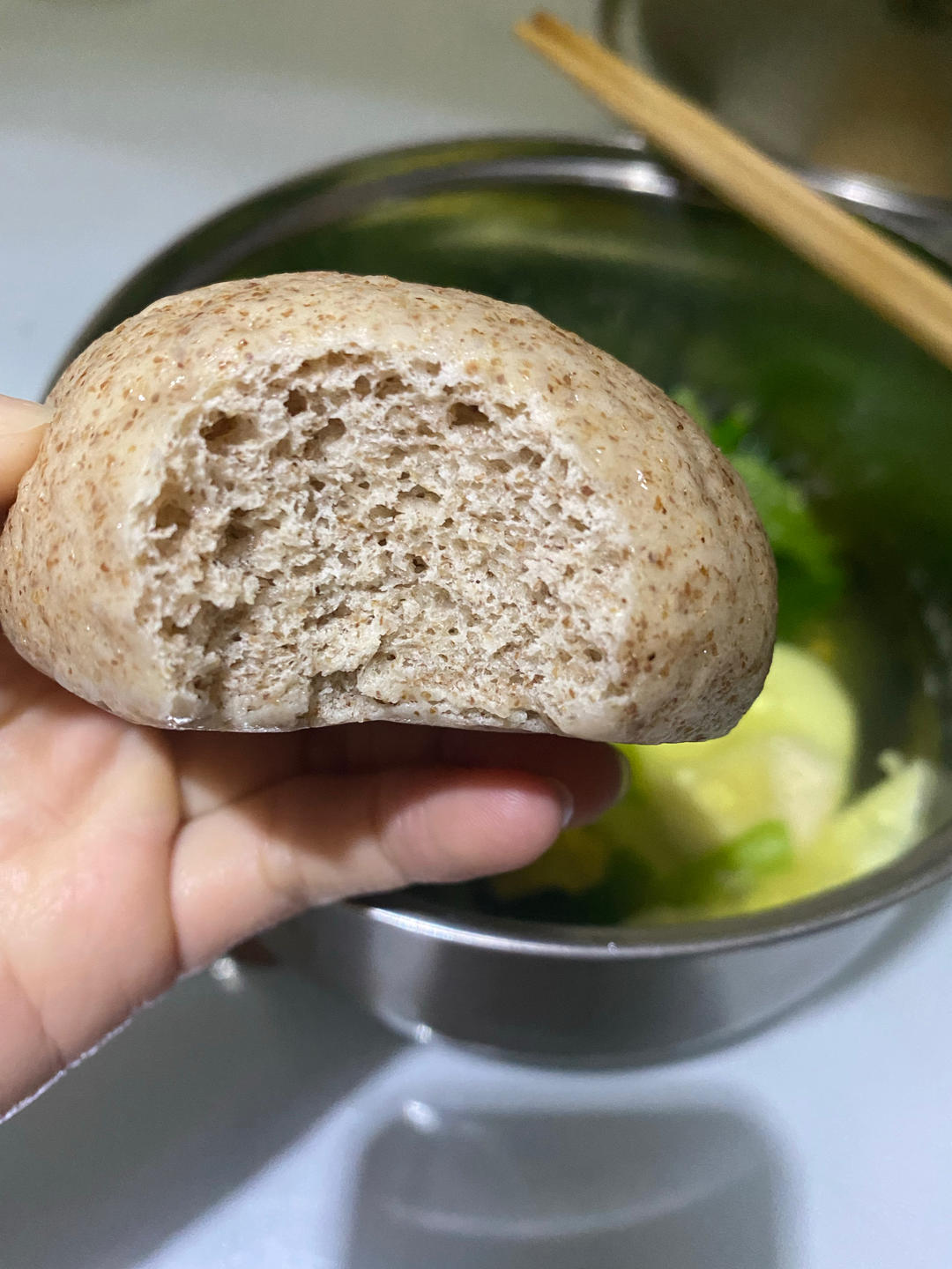 1/3全麦粉,波兰种、水合面团各50g全麦粉+200g中筋面粉,水合面团水量比楼主多30g左右,不然太干了。