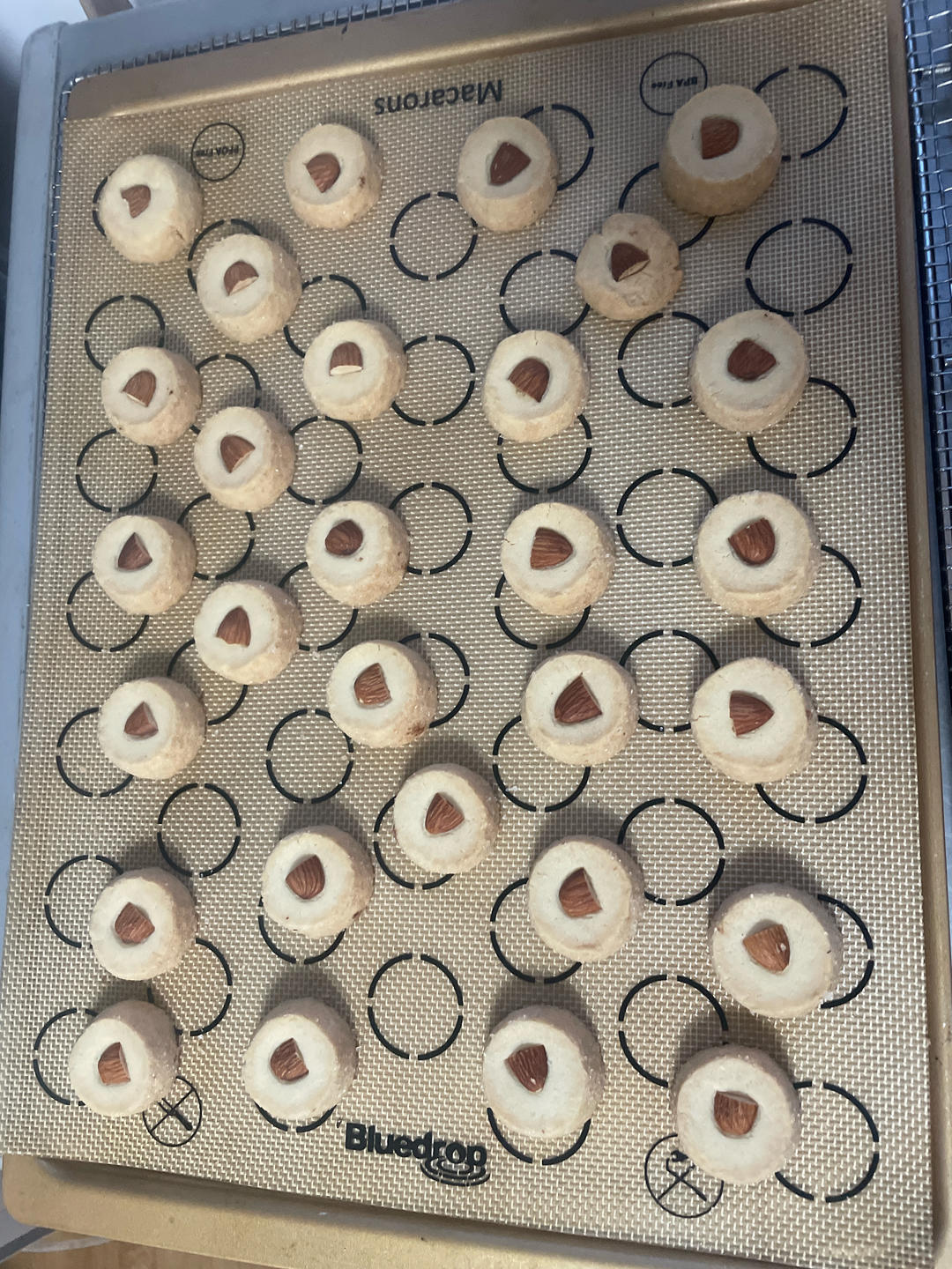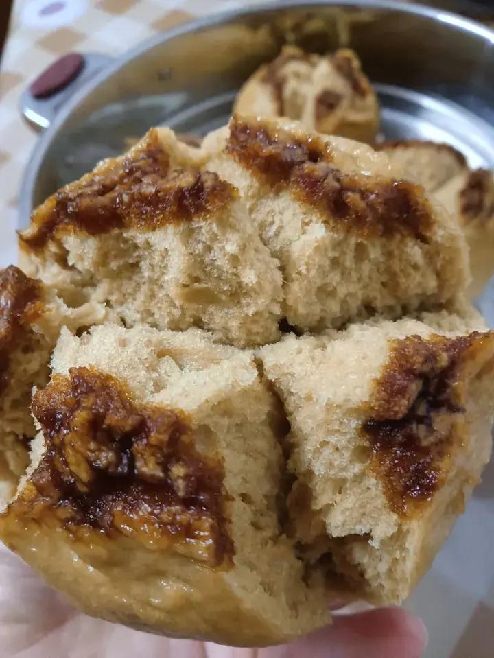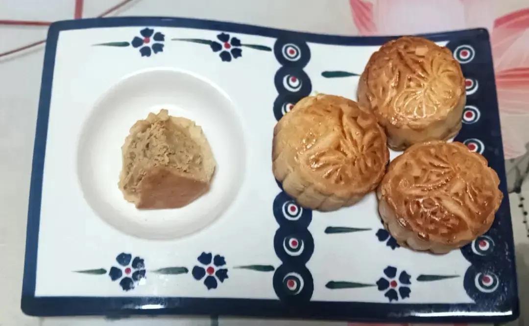 190度25分钟,7分钟后刷蛋黄水,再烤到上色后盖锡纸,馅里加了点白熟芝麻,临安小核桃仁及自制的白扁豆馅,面里加入很多奶...