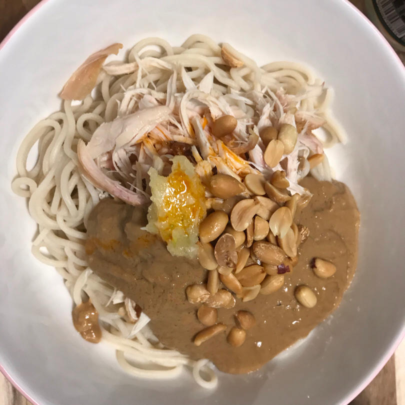 芝麻酱➕花生酱➕糖➕生抽➕香醋➕红油➕花生米➕蒜泥
