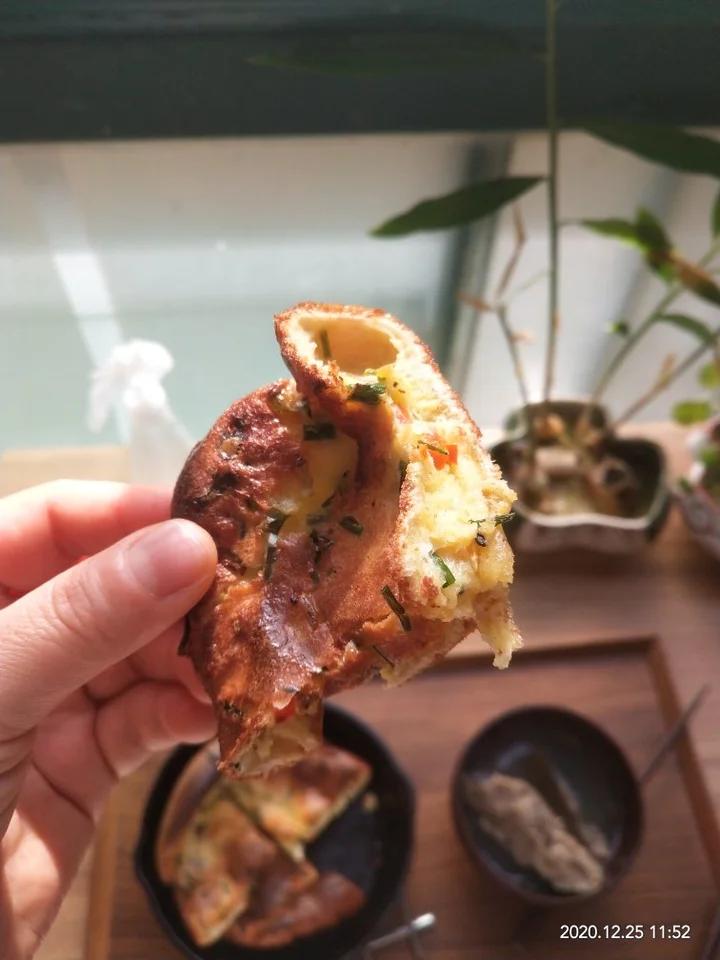 用了一个鸡蛋,洛极16厘米的煎锅烤的,烤箱温度偏高,多试几次,用料和做法简单却百吃不厌的方子,值得收藏!
