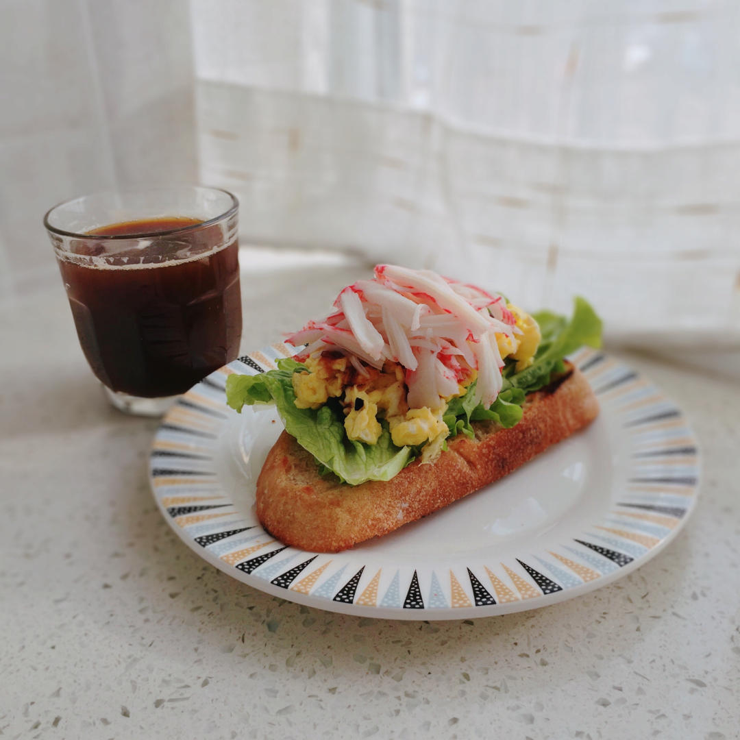❥蟹柳三明治(佐焦糖洋葱酱)丨冰美式〉