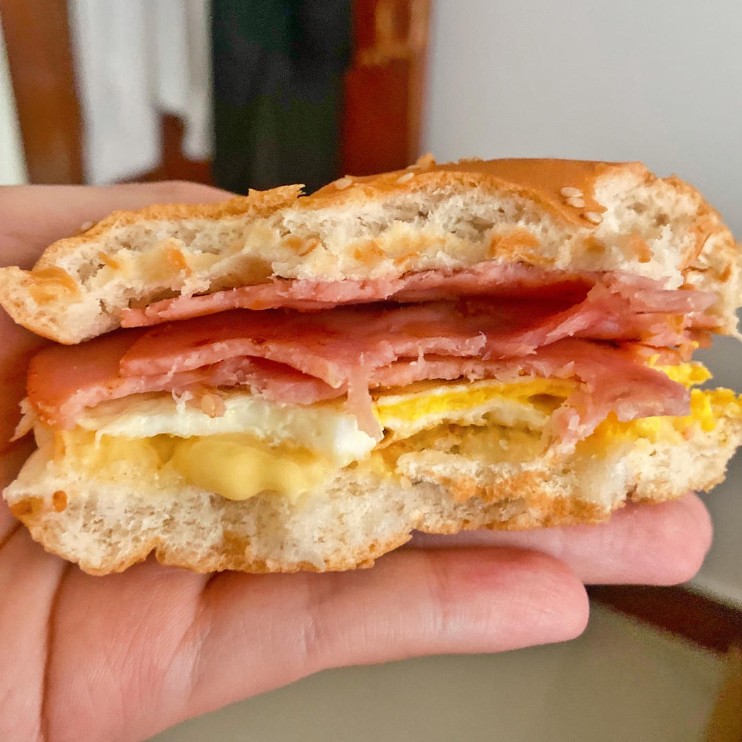 ✨鸡蛋火腿三明治和花生🥜红豆粥,粥可以提前预约✌️ 三明治5分钟就做好,简单快手营养好吃👏