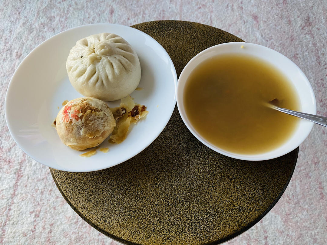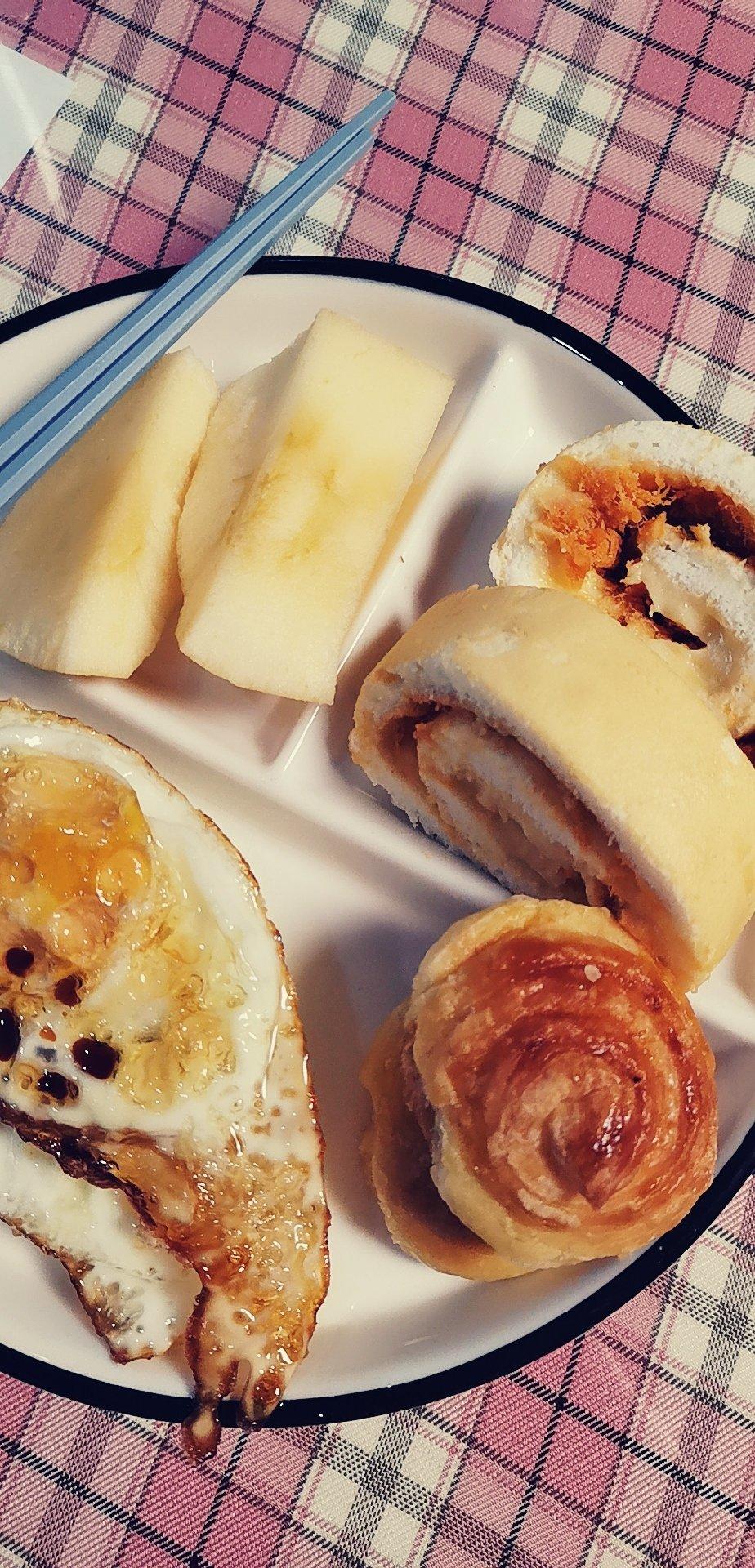 中西合璧的早餐👍👍为了消耗做了卡仕达酱剩下的蛋白,然后把做的卡仕达酱都卷完了,哈哈…虽然没卷紧,毛巾面也没撕出来😂😂不过...