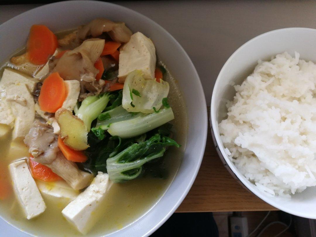 菜心菇胡萝卜豆腐汤 加了腐竹粟米卷 米饭