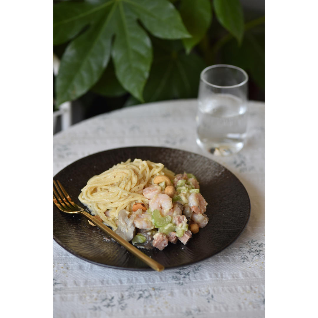 第一次做白酱意面。对我来说太浓郁了点,室友说正好正好……