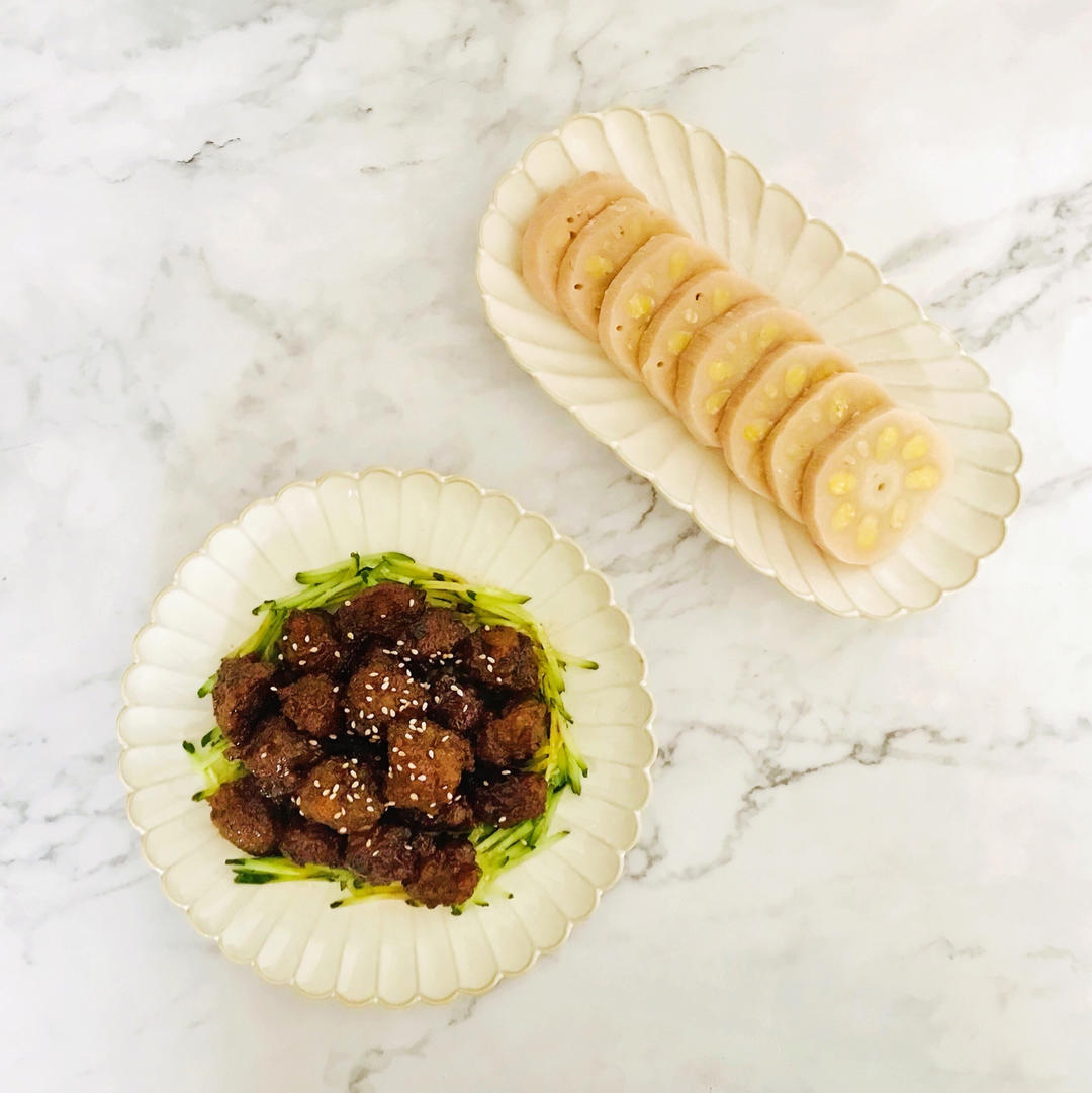 绿豆酿莲藕+糖醋丸子