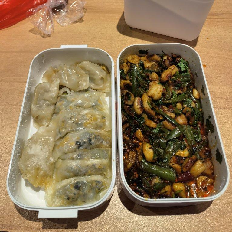 🍱今日便当一人份:小龙虾黄瓜炒鸡蛋180g,黑豆松子恰巴塔4...