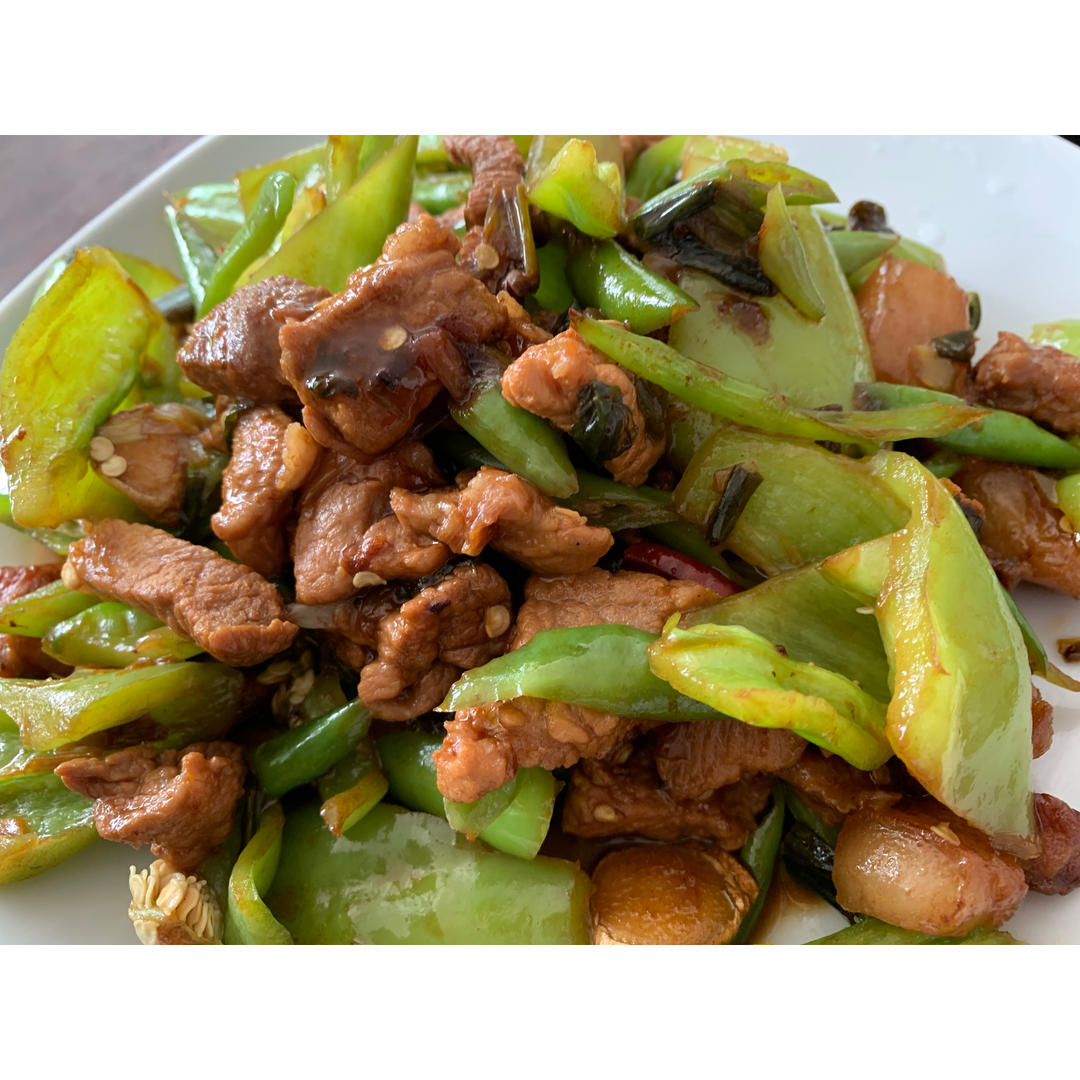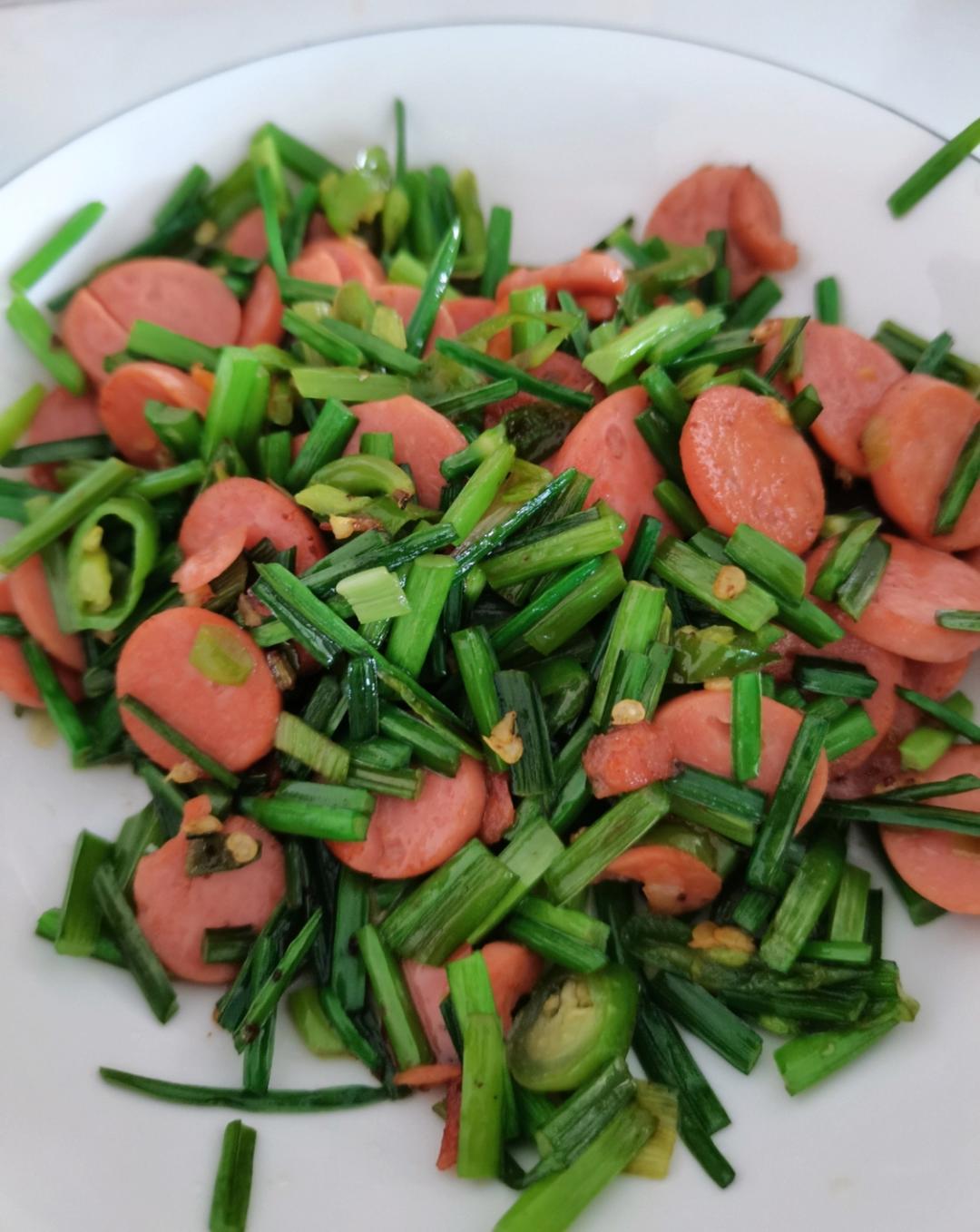 小妞儿要吃辣椒炒火腿肠,现买,顺便给加了点儿韭菜花