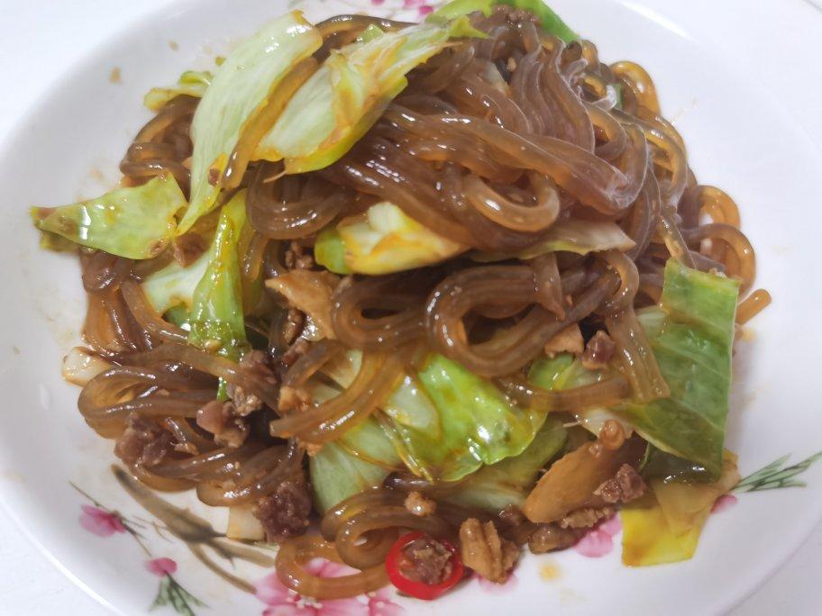 包菜炒粉丝肉沫