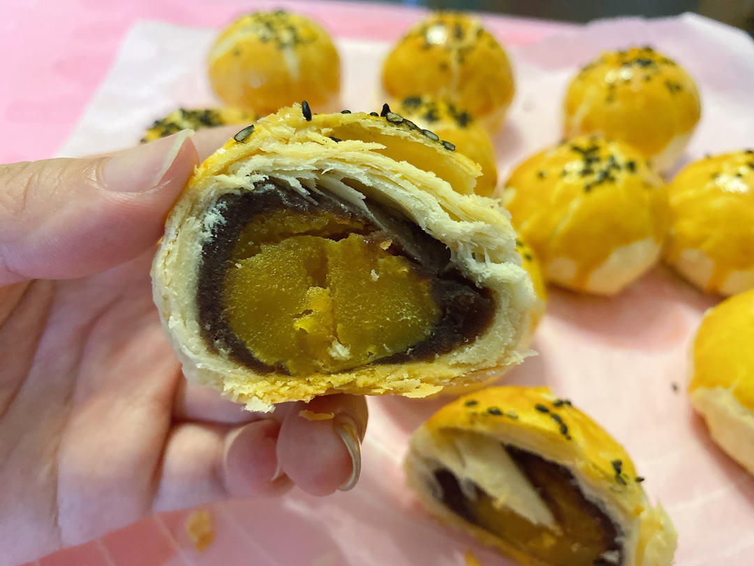 豆沙蛋黄馅月饼,50克月饼,20克皮30克馅,刚好做了19个月饼