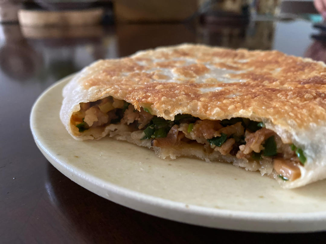 ♥️昨晚剩下的肉馅儿加上韭菜,就成了香菇韭菜馅饼,咬一口,嘎嘣脆,外酥里嫩,一...