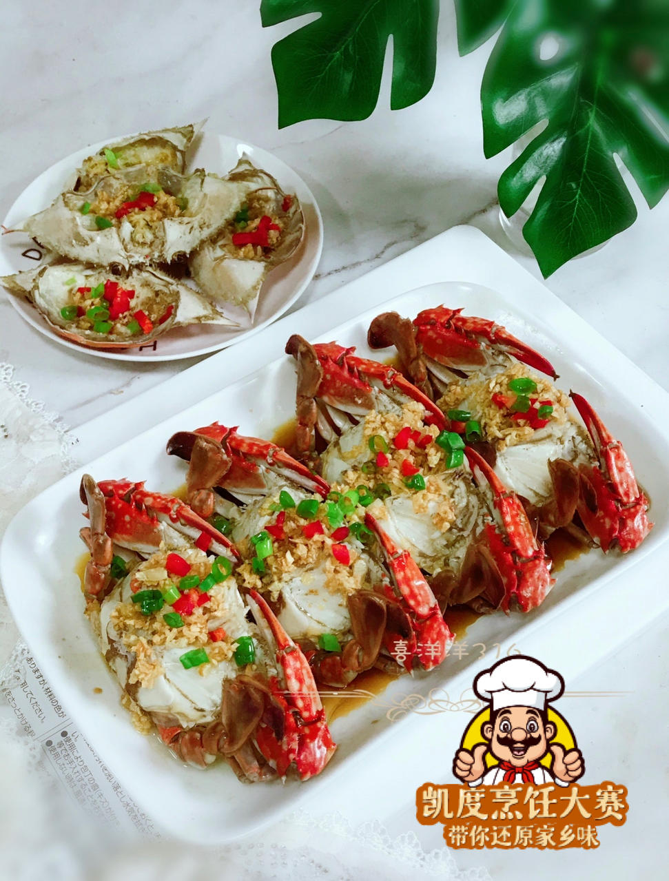 鲜美肥大的梭子蟹,不仅造型美观,味道非常鲜美,用热油逼出蒜香和蟹香,...