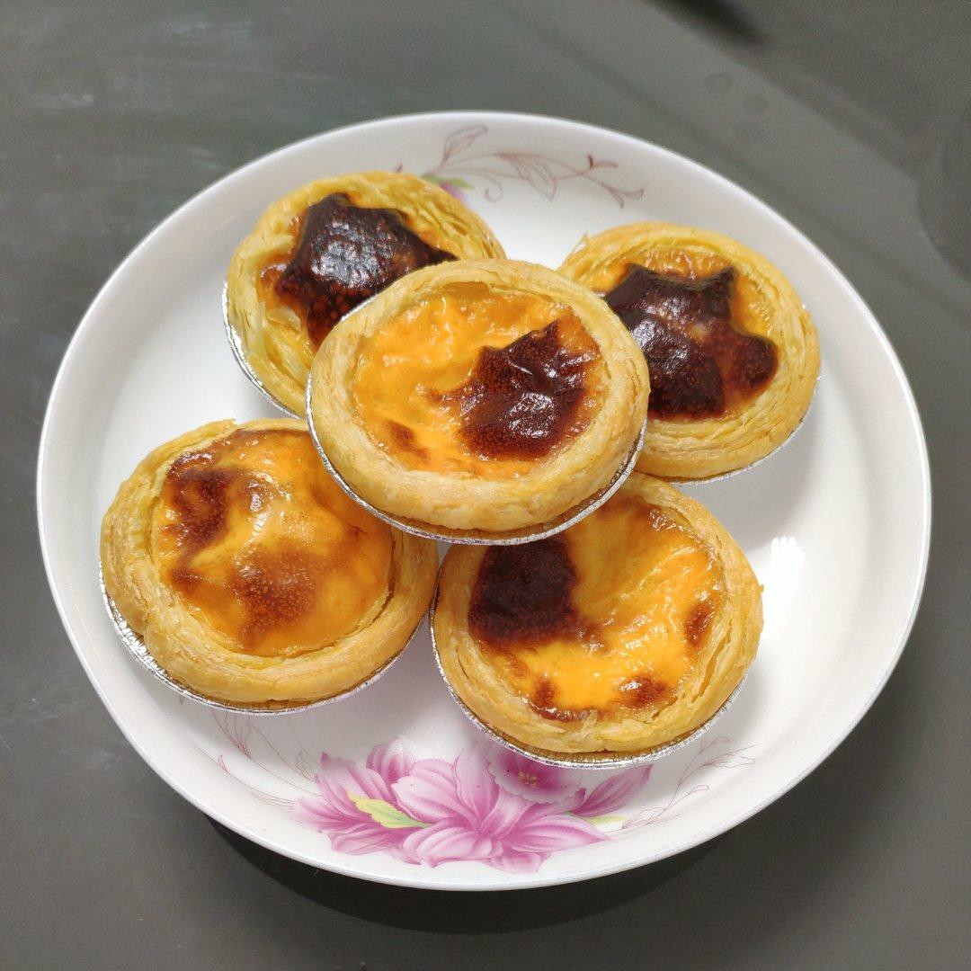 纯牛奶250毫升,白沙糖20克,炼乳15毫升,鸡蛋2个,蛋黄1个,蛋挞皮10个个,格兰仕烤箱下层210度,上层150度,...