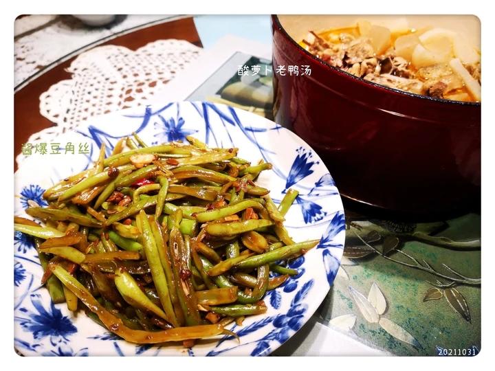 酱爆豆角丝:很少自己做四季豆,切丝虽麻烦点,但丝丝入味。