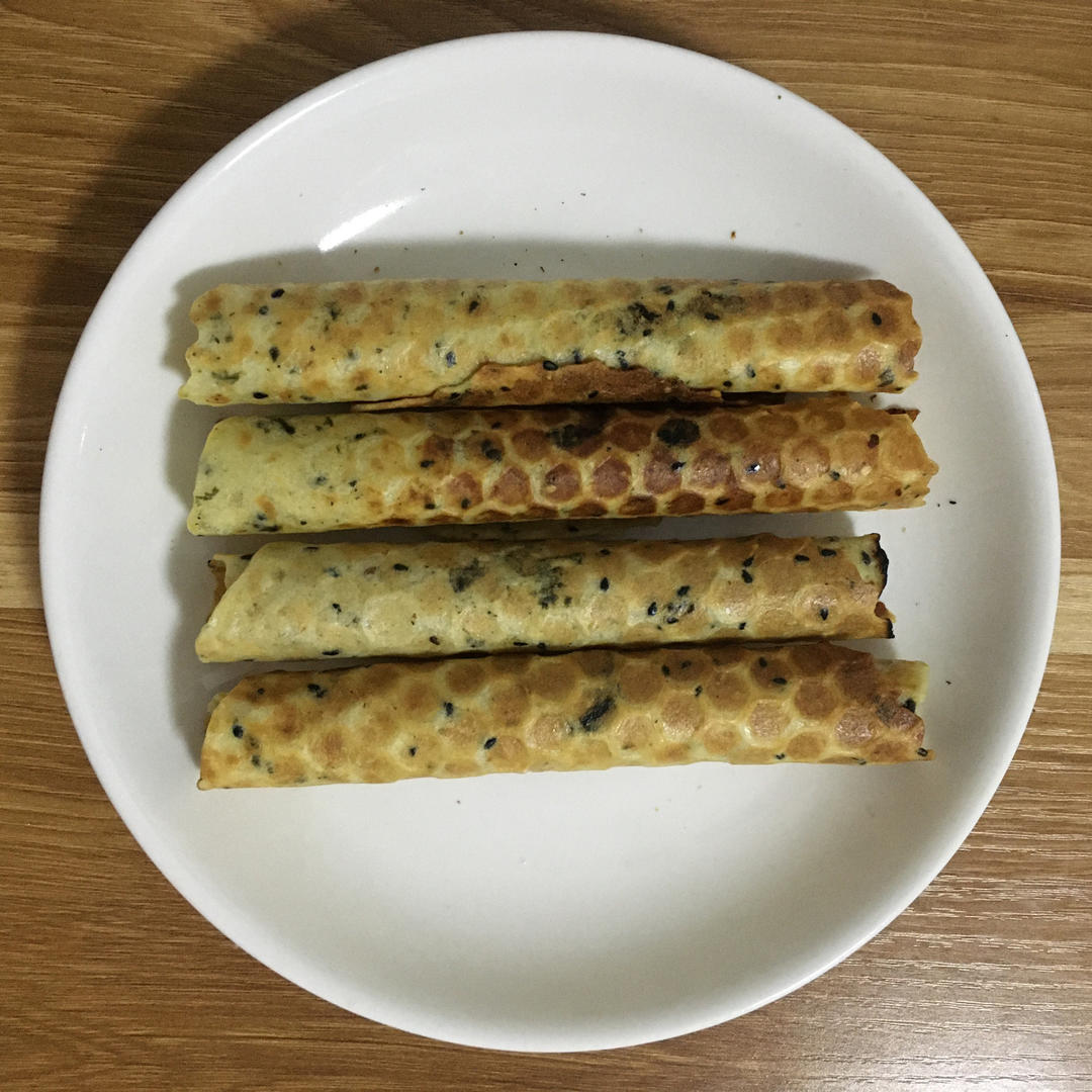 上上周日,中火每个要翻6个来回12个30s,添加了芝麻海苔,美味上升一个level