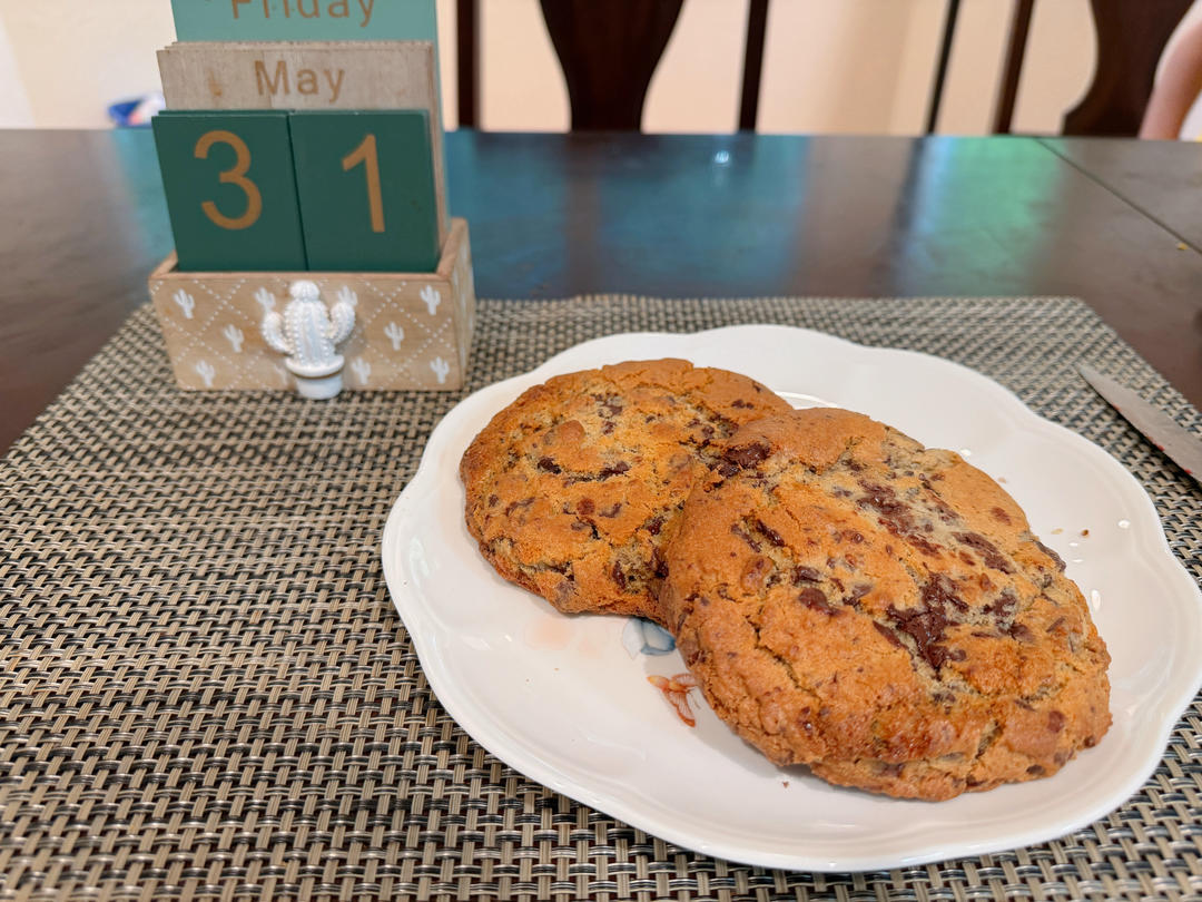 大早上现烤的chocolate cookie!