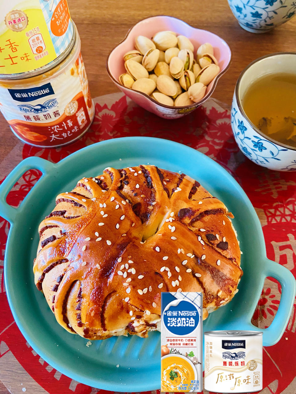 雀巢鹰嘜浓情太妃味奶酱抹在土司上丝丝香浓,在搭配一杯香...