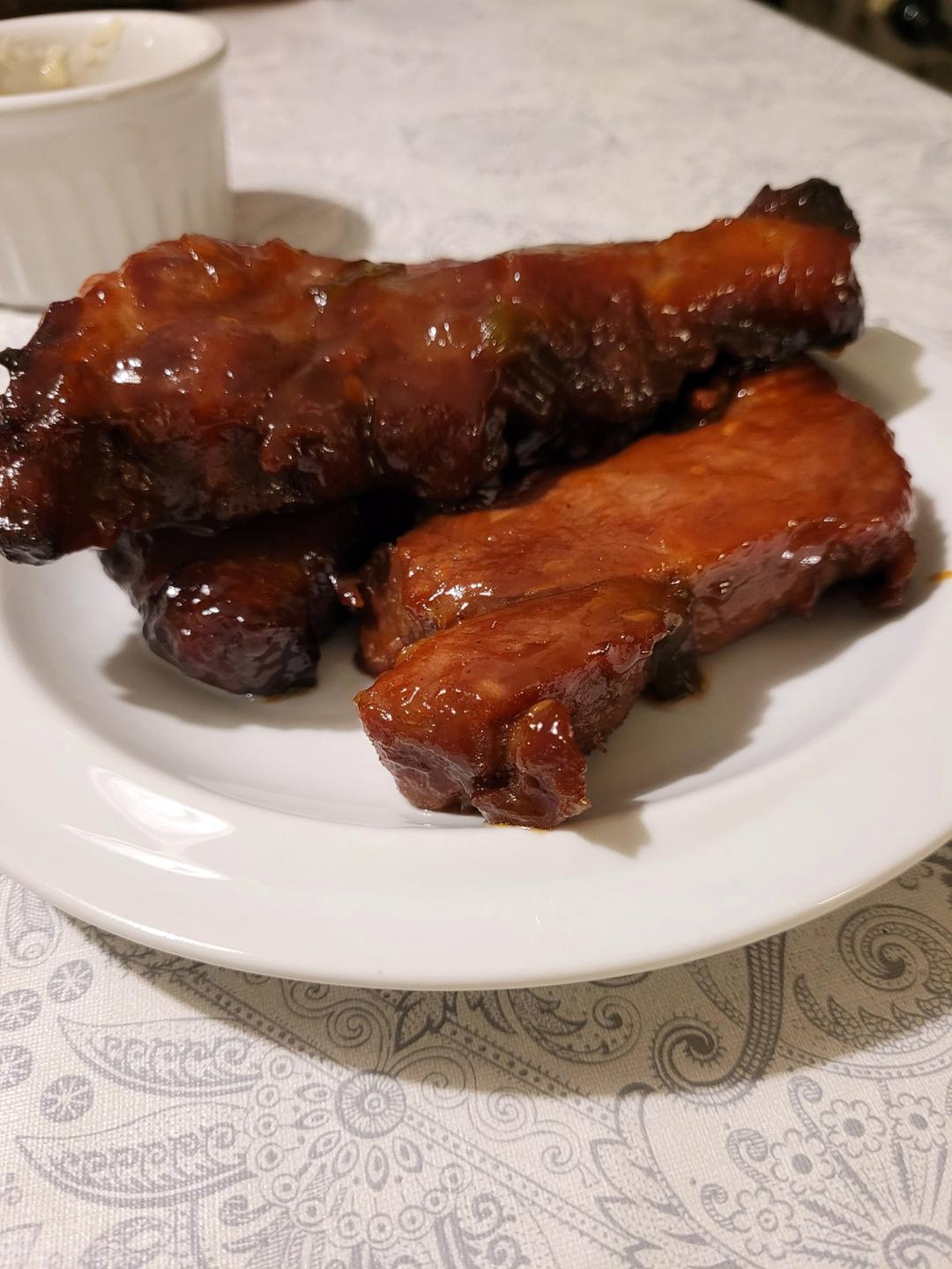 Costco羊肩排没腌制直接焯水。小汤勺:两勺黄豆酱,一勺蚝油,一块白腐乳,没放糖。味道不错!不喜欢...