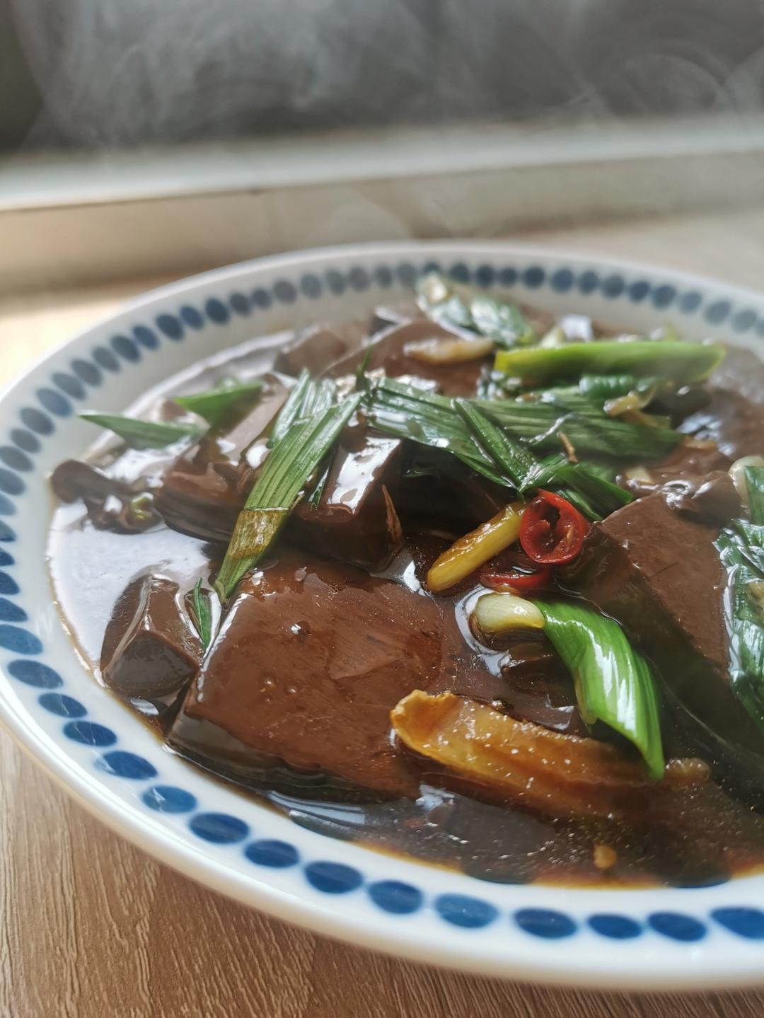 大蒜炒鸭血