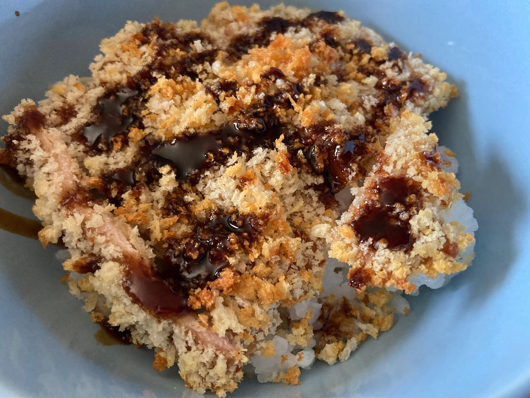 炸猪排饭与微红色糖醋花菜