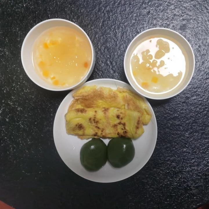 鸡蛋饼,肉松青团,