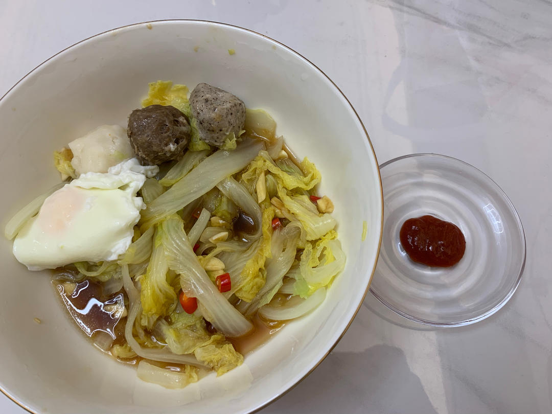 鸡蛋,三色丸子各一...