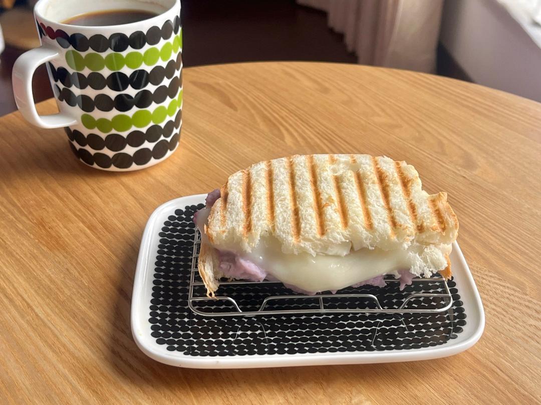 做麻子脸面包剩的芋泥麻薯热压一下 好好吃