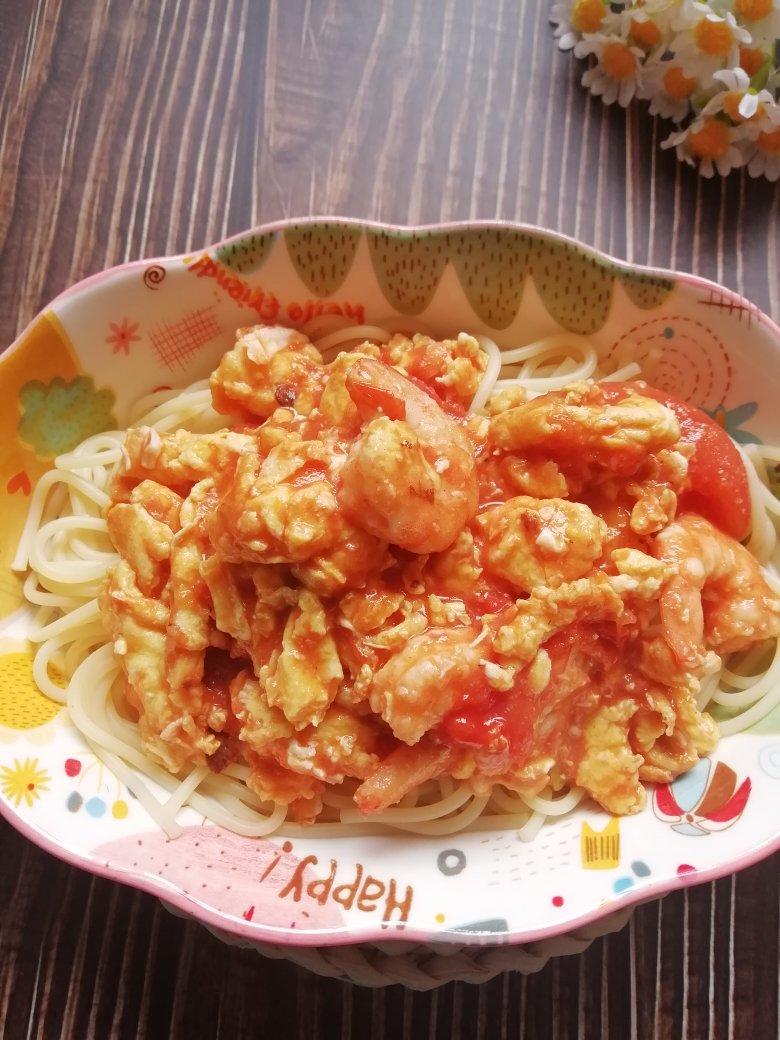 虾仁炒蛋。重新加工了一下,加入了番茄和番茄酱炒制一下,...