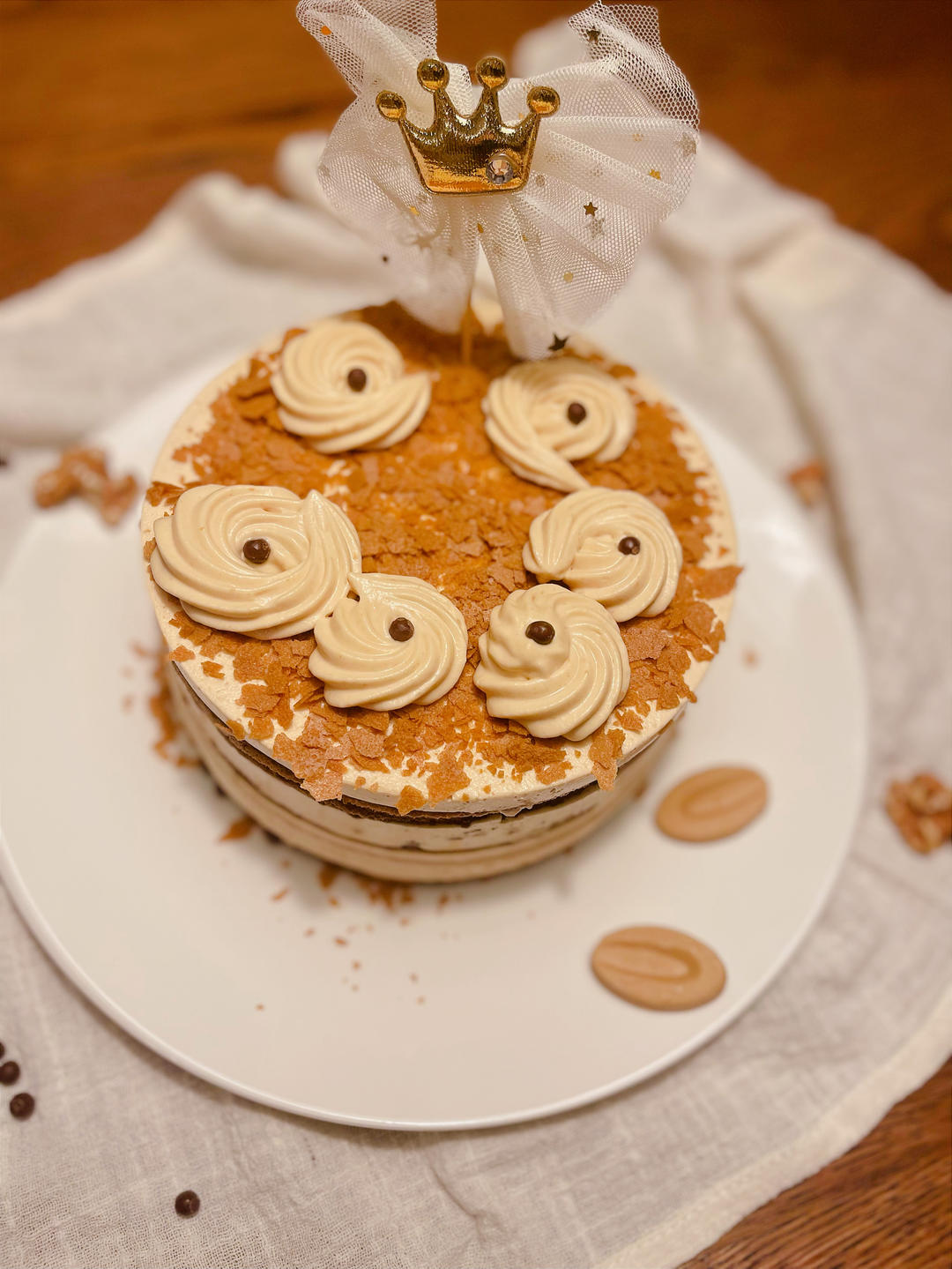 超级好吃!!!第一次打蛋白 完全凭感觉 居然成功了!开心!完全按原配方来的 切开就是沙沙声 直接倒进6寸模具里也正好 就...