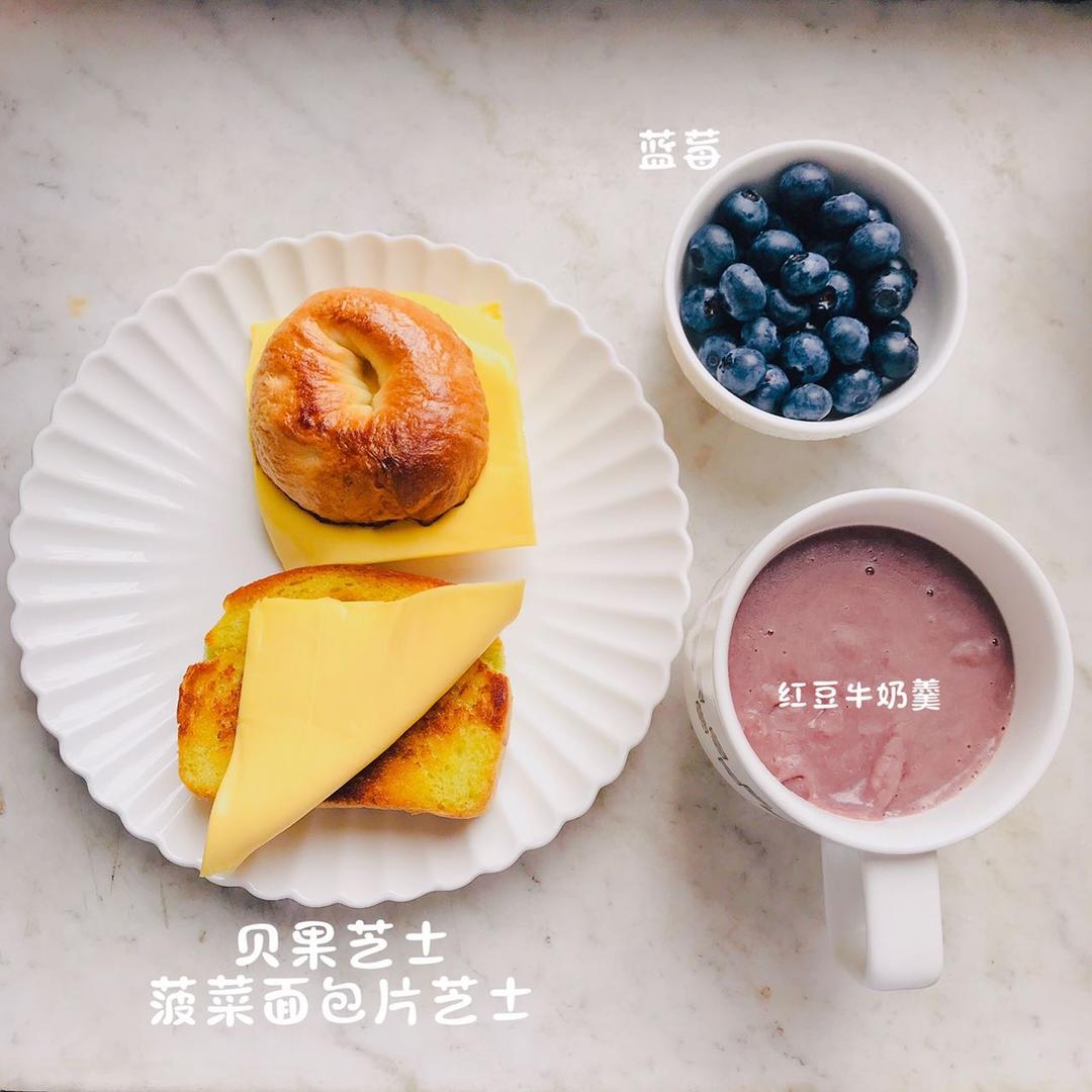 菠菜面包片芝士#红豆牛奶羹...