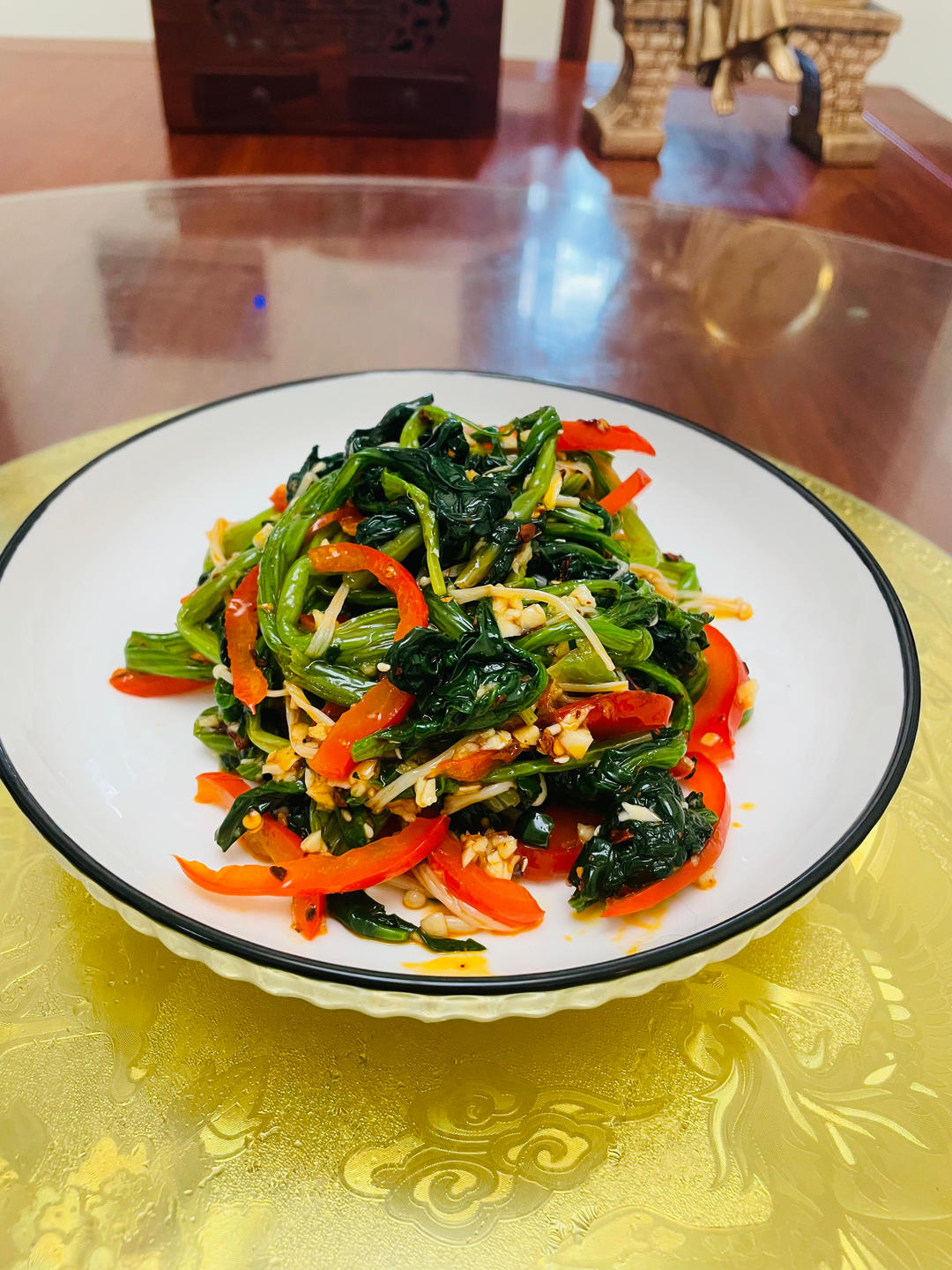 凉拌菠菜:咸鲜微辣油润。红油味,好吃😋😋…