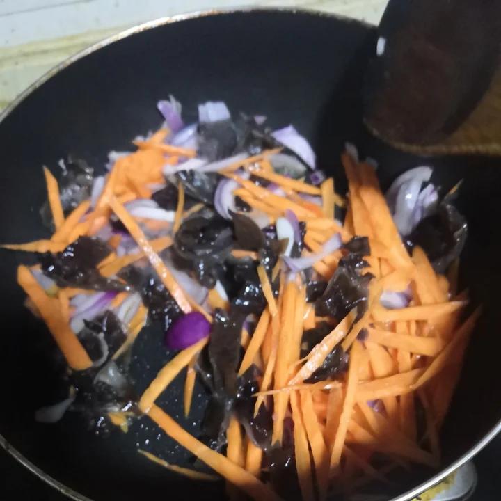 下雨树上长了木耳,家里有胡萝卜洋葱,简单搭配一餐,完美